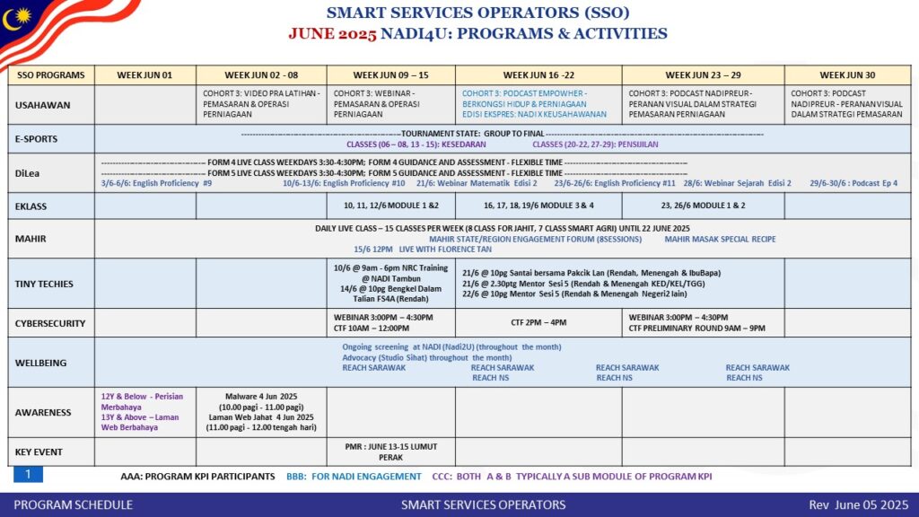 JADUAL AKTIVITI PERKHIDMATAN PINTAR NADI BULAN JUN 2025